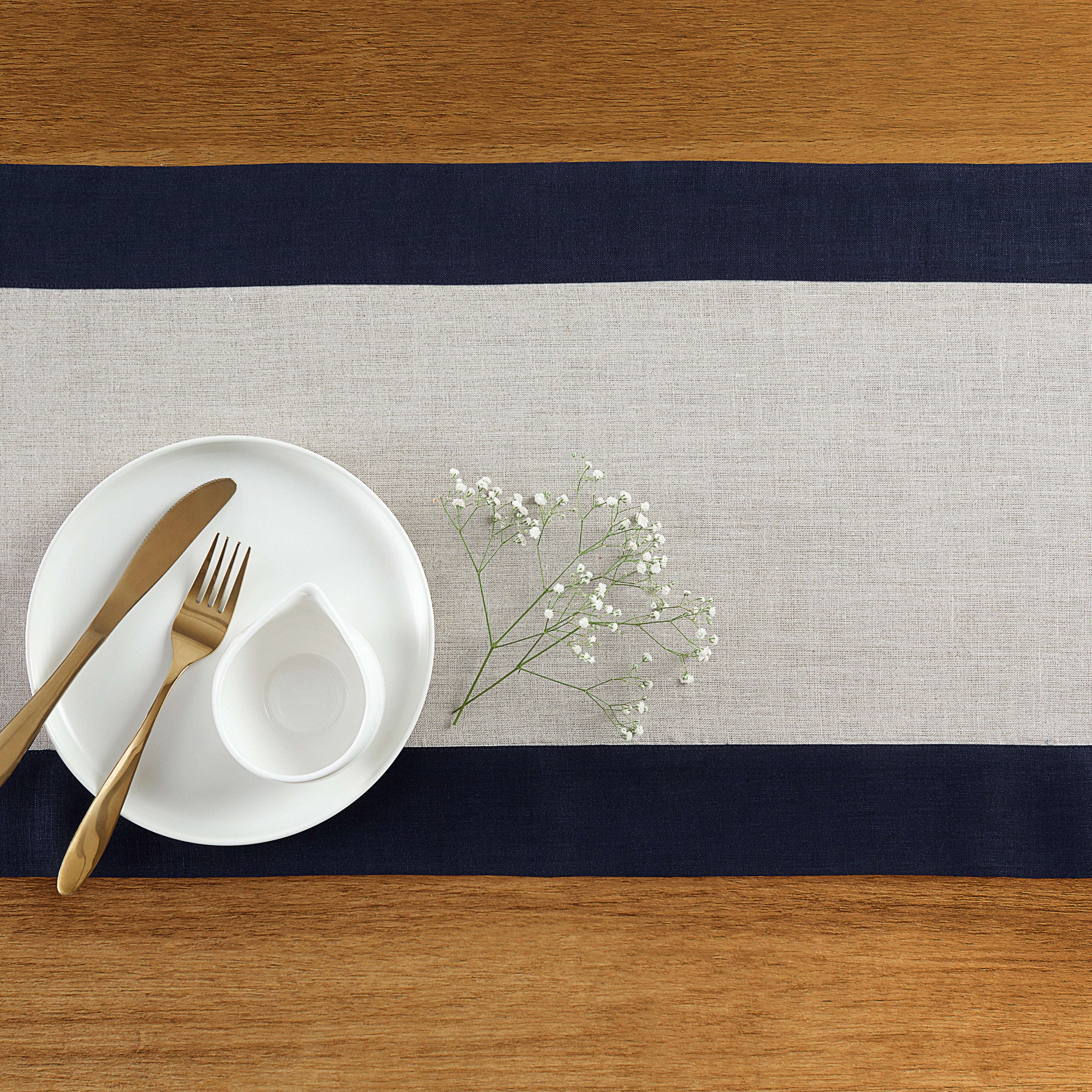 Contempo Navy & Natural Table Runner