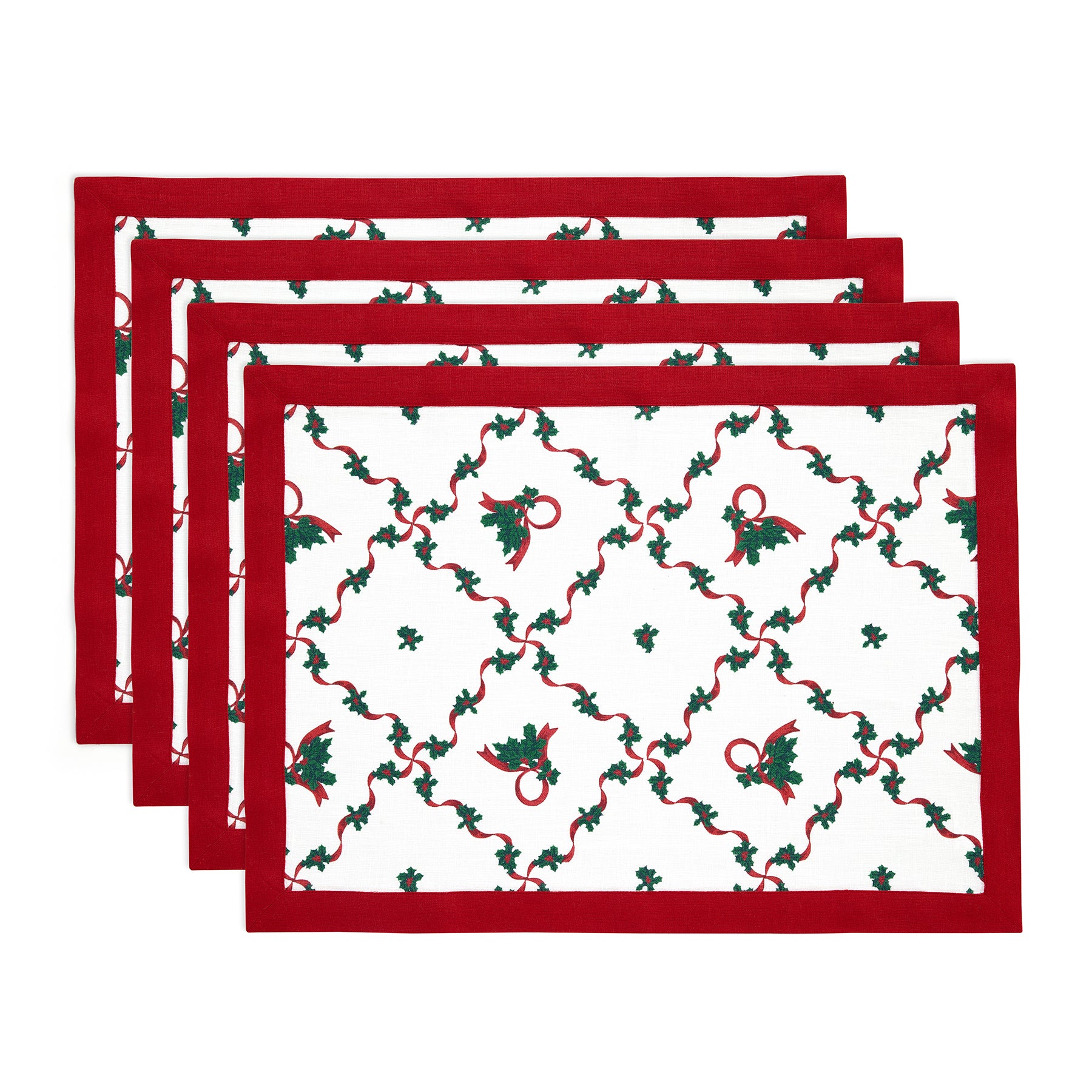 - 100% Pure Linen Holly Ribbon Placemats