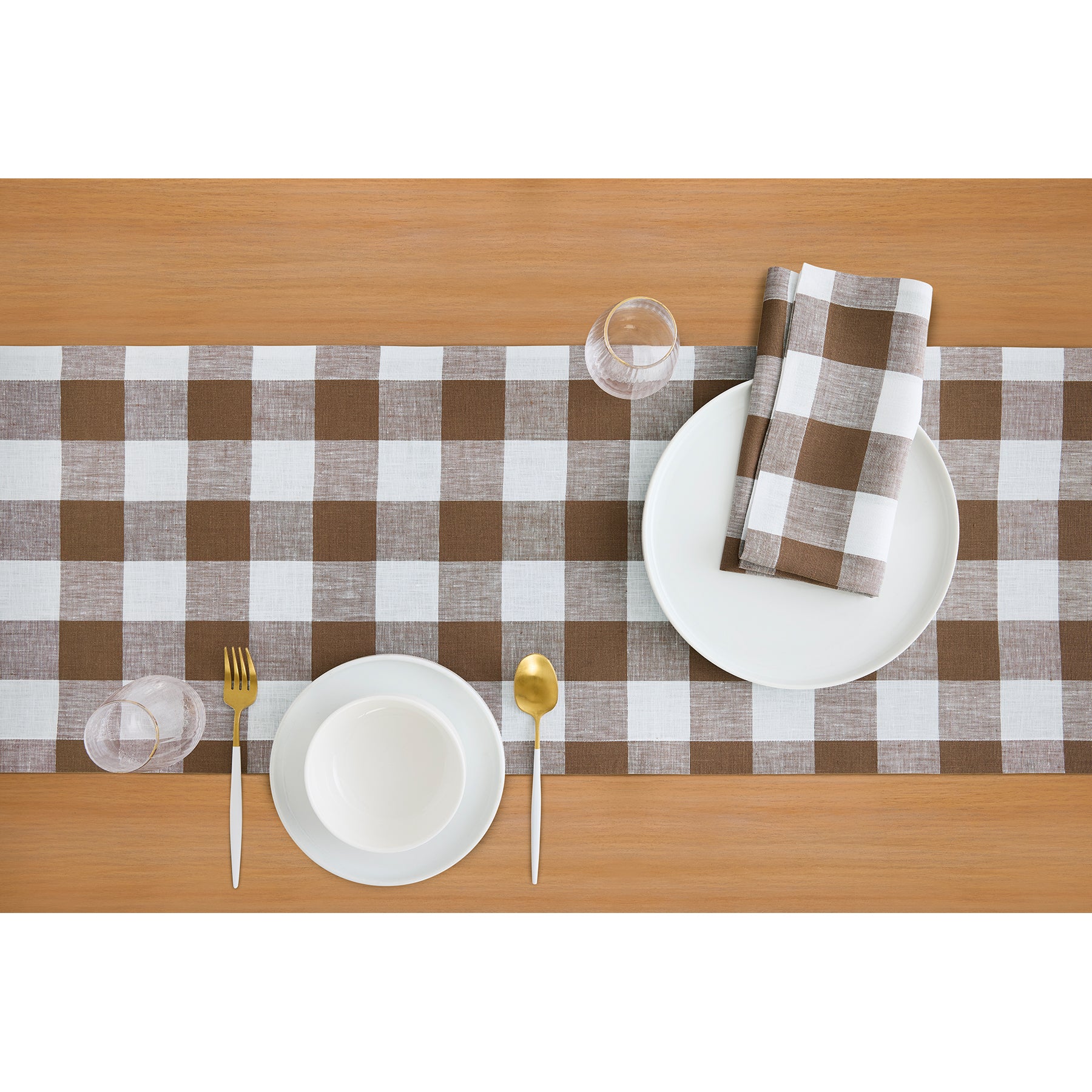 Buffalo Check Coco Brown & White Table Runner