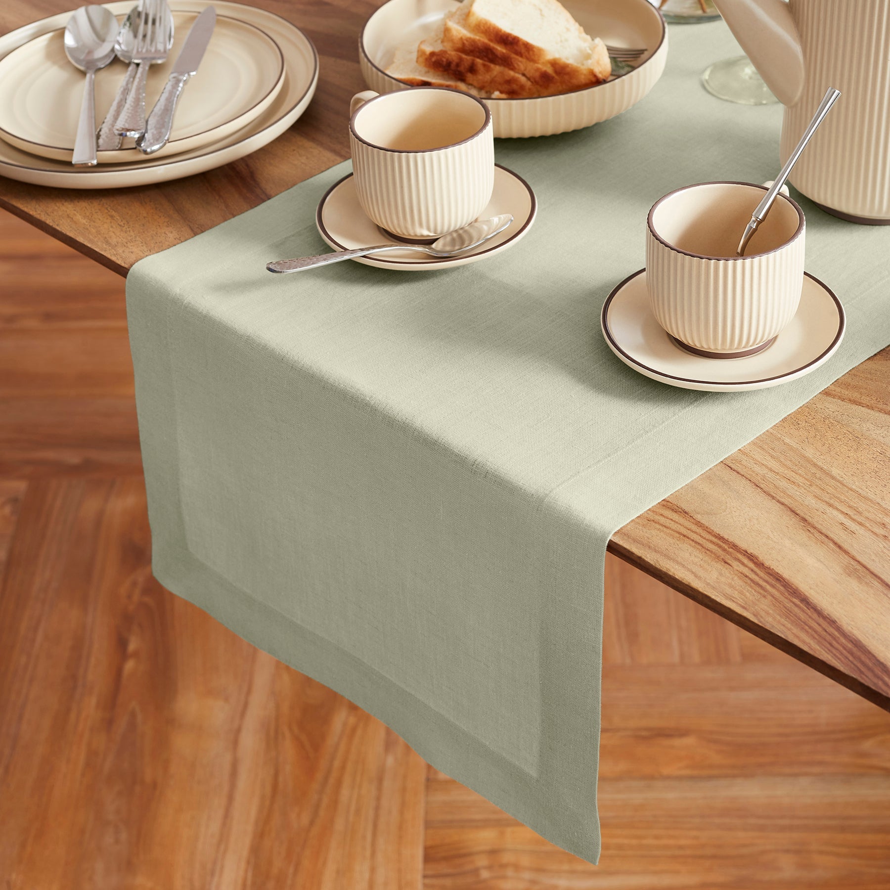 Sonoma Pre - Washed Green Table Runner- 100% Pure Linen Sonoma Prewashed Table Runner